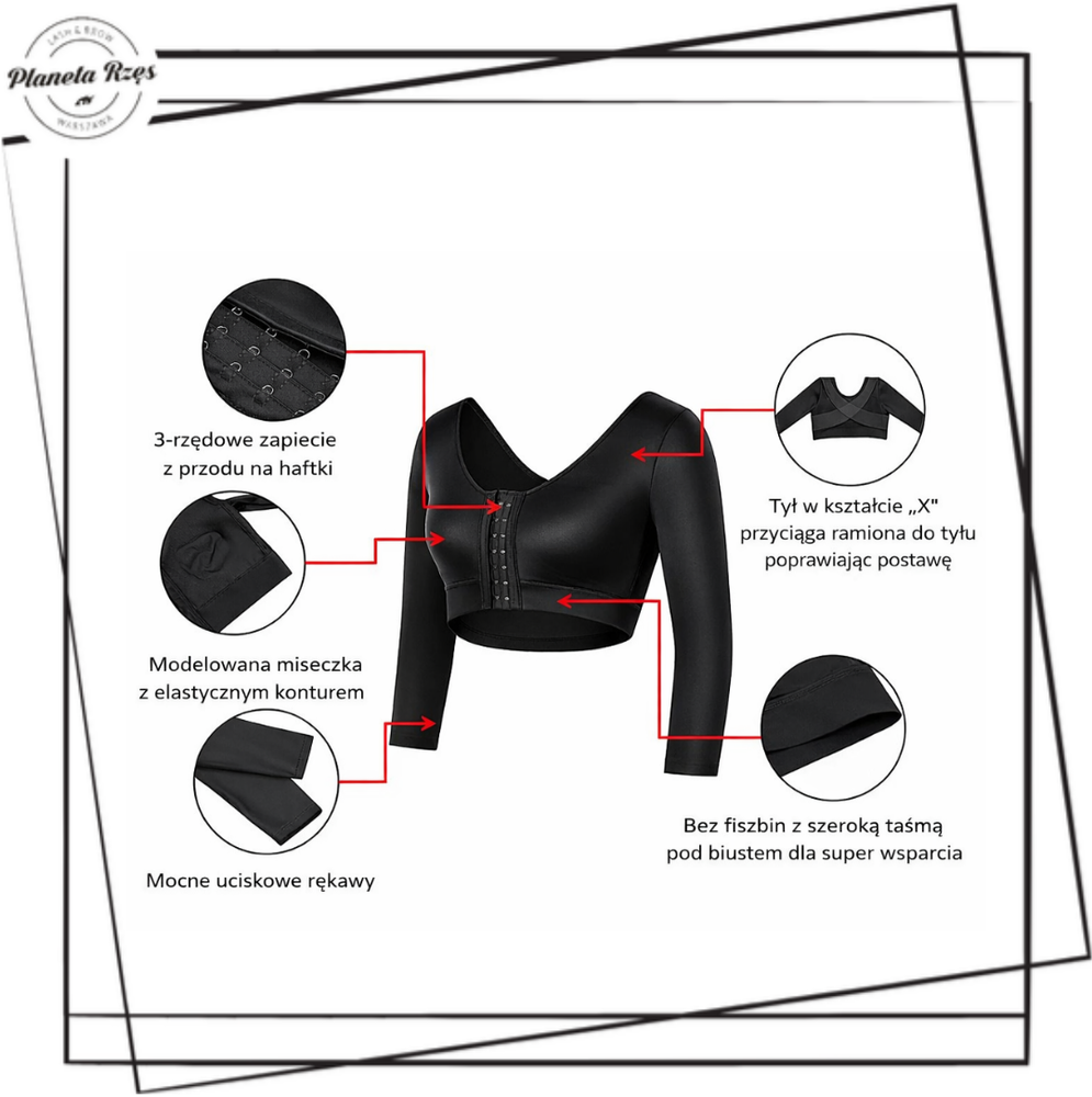 Kompresja zastosowana w bolerku nie jest wyrobem medycznym. To komfortowy, użytkowy ucisk, który sprawdzi się w codziennym noszeniu, również u osób chcących wymodelować ramiona, poprawić wygląd sylwetki oraz odciążyć górną część pleców. Produkt nie wymaga zaleceń lekarskich i jest bezpieczny do regularnego użytkowania.