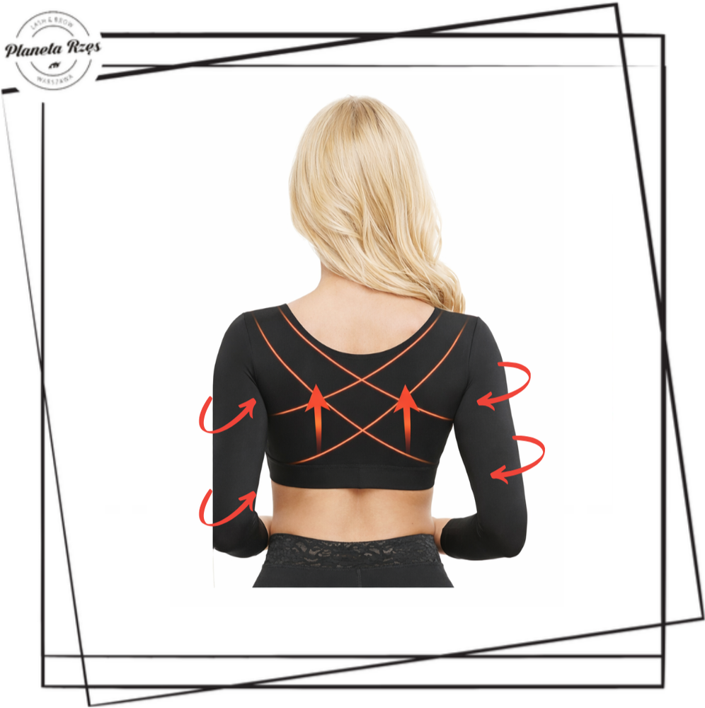Bolerko kompresyjne przeznaczone do codziennego wsparcia i modelowania górnej części ciała. Obejmuje ramiona, plecy oraz okolice biustu, pomagając wygładzić sylwetkę i poprawić komfort noszenia przez cały dzień.